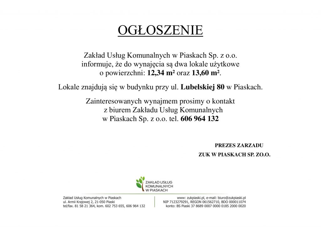 Wynajem lokali w budynku przy ul. Lubelskiej 80 w Piaskach